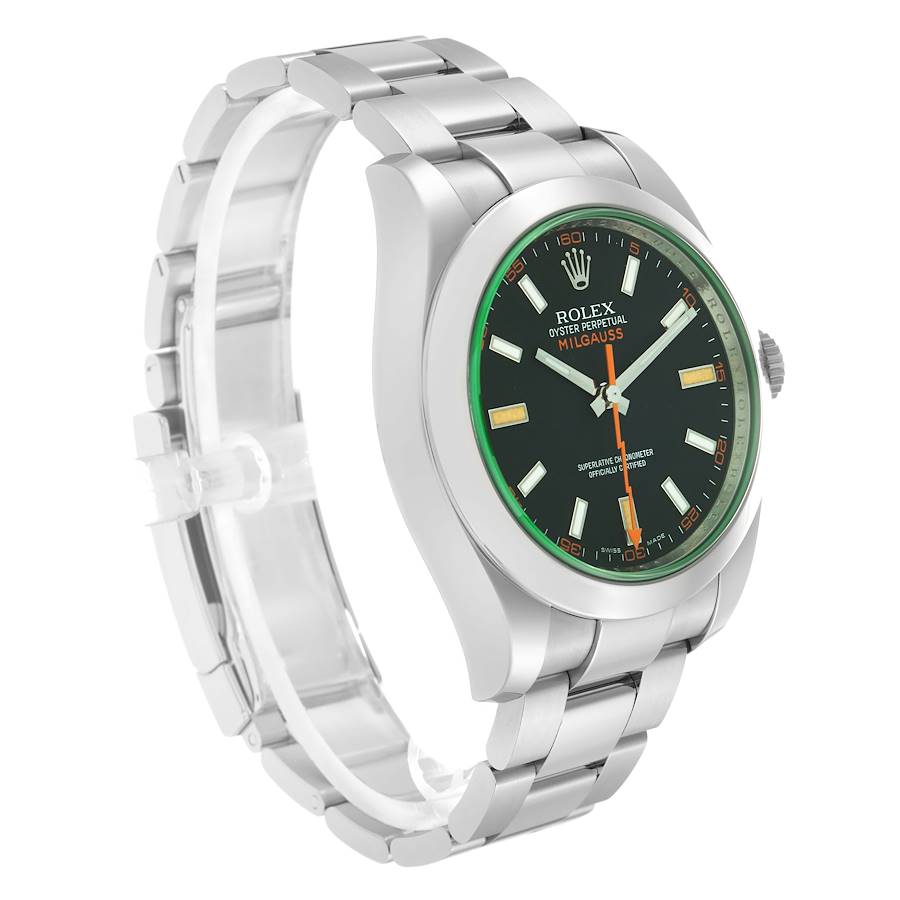 Model Name: Replica Rolex Milgauss 40 Green Crystal Black Dial Steel Mens Watch 116400