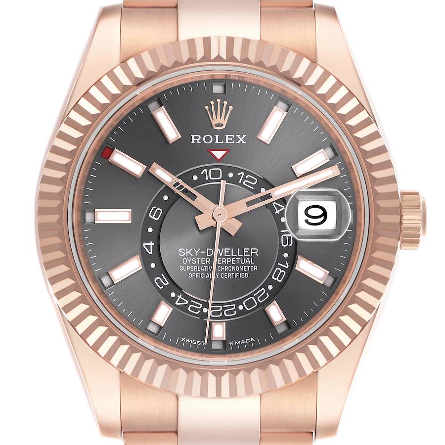 Model Name: Replica Rolex Sky-Dweller Rose Gold Slate Dial Mens Watch 336935
