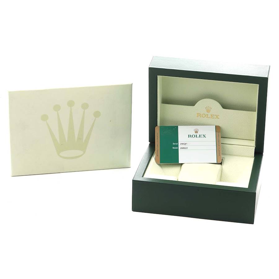 Replica Rolex Yachtmaster 37 Midsize Steel Platinum Bezel Mens Watch 268622. Officially certified chronometer automatic self-winding movement. Stainless steel oyster case 37.0 mm in diameter. Rolex logo on the crown. Pointed crown guards. Platinum special time-lapse bidirectional rotating bezel with raised numerals. 0 - 60 graduation scale. Scratch-resistant sapphire crystal with a cyclops magnifier. Slate dial with luminescent dot hour markers and baton hands. Blue luminescent sweeping seconds hand. Date calendar at the 3 o'clock aperture. Stainless steel oyster bracelet with a flip-lock clasp and easylink micro-adjustment. Fits a 7 3/4" wrist.