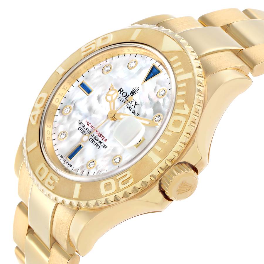 Model Name: Replica Rolex Yachtmaster 40mm Yellow Gold MOP Diamond Sapphire Mens Watch 16628B